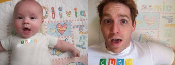 Guy Reenacts Scenes in Baby Photos